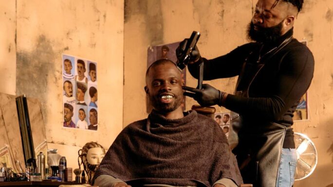 Inspiré par l’histoire d’un barbier de Leeds, ancienne cité industrielle du Nord de l’Angleterre, Barber Shop Chronicles invite le public au coeur d’un salon de barbier, lieu de sociabilité et des mémoires vives de la diaspora africaine. La pièce du poète anglo-nigérian Inua Ellams ouvre les portes d’un espace intergénérationnel, où l’on entend résonner le wolof, le lingala, le soninké, le bambara et le bamiléké. Les plaisanteries peuvent être acerbes mais elles visent juste. Business, relations avec les parents, amour et politique s’enchevêtrent dans des récits portés par le verbe haut et l’humour de ces hommes qui trouvent chez le barbier un espace de soin, mais aussi d’écoute et de conseil. À défaut de pouvoir couper vos cheveux, raser votre barbe ou tailler votre moustache, installez-vous confortablement pour un voyage entre Abidjan, Bruxelles, Dakar et Kinshasa !