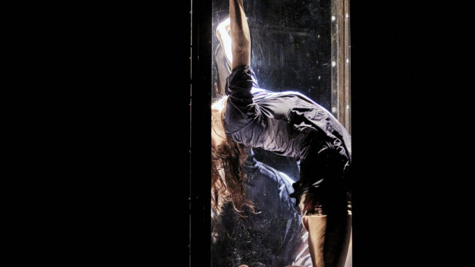 Un tube transparent, trop étroit pour être habité. Ce qui aurait pu être un abri devient ainsi une cage contraignante. Une jeune femme s’y retrouve enfermée. En tâtonnant, se tordant et se pliant, elle cherche une issue, animée par le désir et le besoin d’un ailleurs.