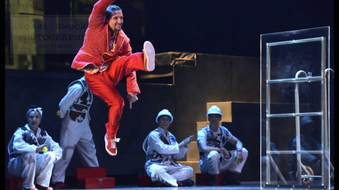 Sur scène, neuf artistes mêlent hip-hop et arts du cirque dans un battle rythmé et sans repère temporel. Guidé par Jeannot Painchaud, le spectacle enchaîne trail bike, roller, mât chinois, jonglage, trampoline et danse urbaine dans une chorégraphie précise et vive. La scénographie, entièrement repensée, s’appuie sur un univers numérique qui ancre le spectacle dans son époque.