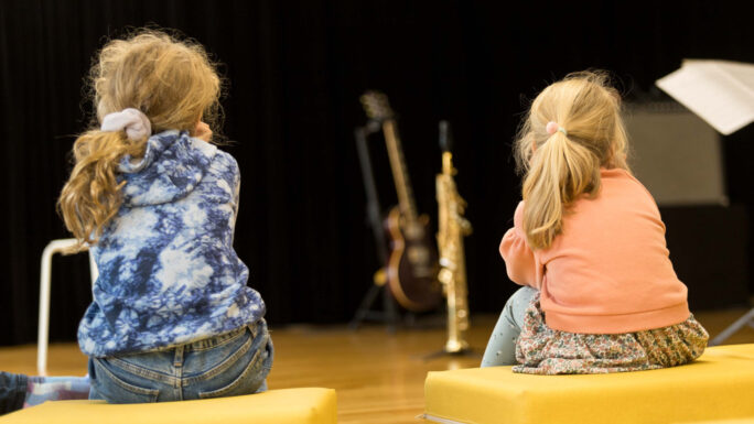 Le mini récital c’est un récital à hauteur d’enfant : assis sur des coussins pour écouter et voir l’instrument au plus proche.