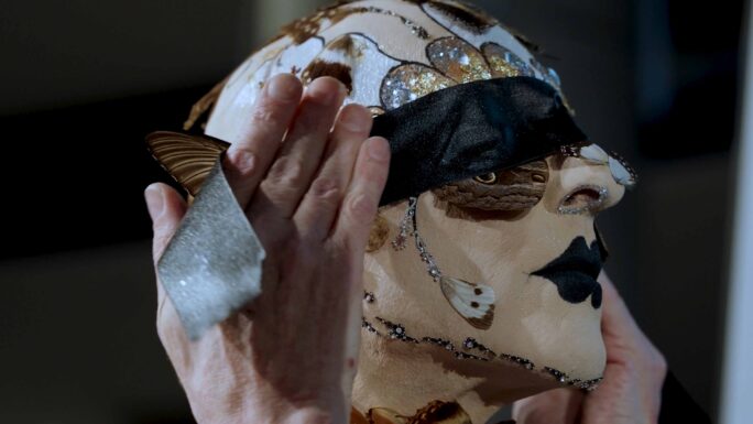 Dans ses performances, Steven Cohen fait de son corps un objet vivant, transgressif, une œuvre en soi. Perché sur d’imposantes chaussures à plateforme, l’artiste sud-africain se présente à nous telle une créature métamorphosée vêtue de costumes spectaculaires. Avec People Will People You, il nous offre une expérience inédite, engageant un dialogue avec le public. Lui qui s’est toujours exprimé par le langage du corps, prend ici la parole. Un geste rare, où la voix devient à son tour un acte d’existence et de résistance. Ce choix ouvre un espace de rencontre où chacun·e, artiste comme spectateur·rice, endosse à la fois le rôle de témoin et celui d’acteur·rice.