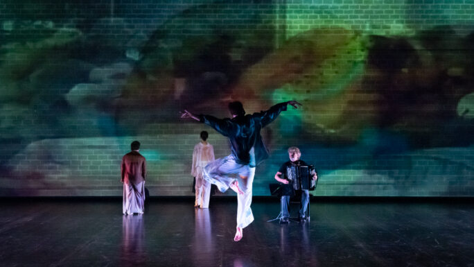 Reflet également d’un cadre politique qui évolue : en fond de scène défilent des images du présent, qui reconnectent l’art à d’autre types de mouvements, ceux de masses animées par diverses causes. Plusieurs strates temporelles se superposent alors : les notes de Bach, magistralement interprétées à l’accordéon par Philippe Thuriot, les variations sur une partition corporelle de Paxton, et les emprunts aux mouvements populaires, tant médiatiques que politiques.