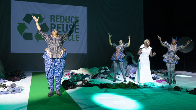 Dans Wasted Land, Ntando Cele aborde la fast fashion comme un signe du temps : dans cette surconsommation vestimentaire qui délègue au continent africain sa responsabilité dans la destruction du monde, s’exprime un néocolonialisme contemporain, où les un·es sont condamné·es à vivre des rebus des autres.