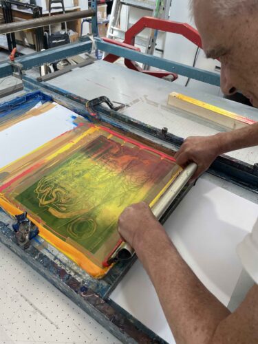 Avec un résident, cette publication a été imprimée en sérigraphie, au sein des ateliers de la Villa Belleville. Il s'agit d'un établissement culturel de la Ville de Paris consacré aux arts visuels dans lequel je menais une résidence artistique. Cet atelier a permis une initiation technique à l'impression, un temps de partage et de rencontre entre le résident de la maison d'accueil et d'autres artistes résident de la Villa Belleville.
